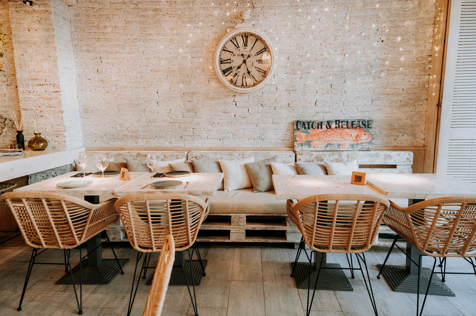 La decoración en Lolita Barceloneta es una parte esencial de la experiencia. Hemos adoptado un estilo que te hará sentir como si estuvieras en un rincón de paraíso, con tonos tierra y una decoración única que evoca un ambiente que te conectará con la serenidad y la belleza de destinos tropicales. Cada detalle ha sido cuidadosamente seleccionado para ofrecerte un ambiente que te transporta a un lugar lejano y relajante.